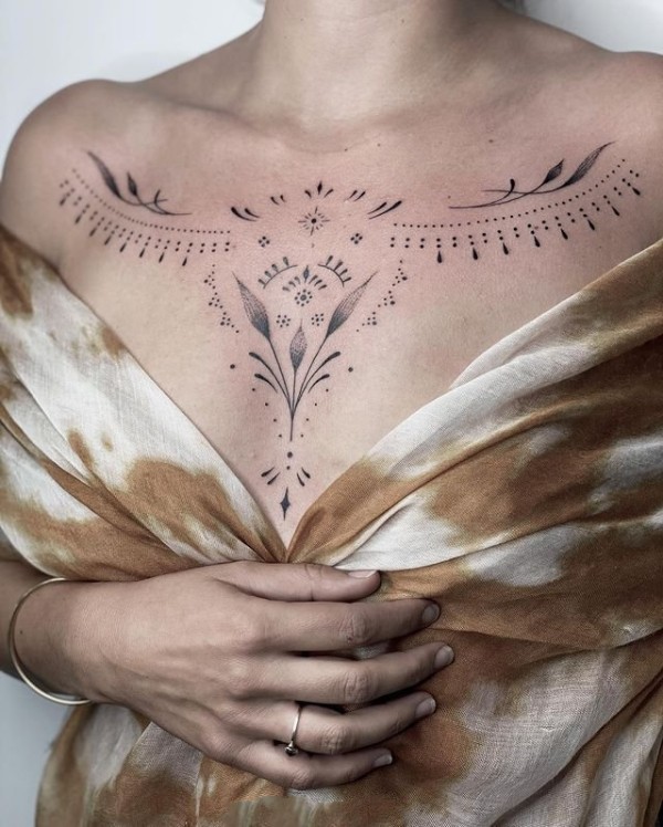 女性胸部上的好看纹身图片9张