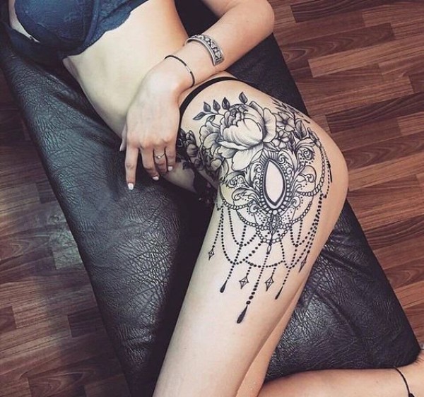 蕾丝蝴蝶结纹身 少女心满满的蕾丝蝴蝶结纹身图案