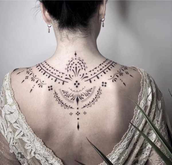 超完美黑色曼陀罗图案纹身点刺技巧来自纹身师利迪娅
