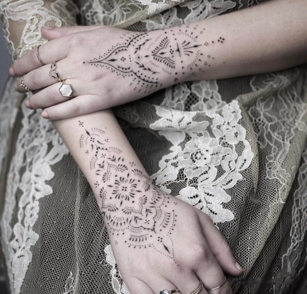 超完美黑色曼陀罗图案纹身点刺技巧来自纹身师利迪娅