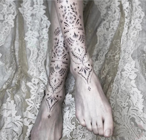 超完美黑色曼陀罗图案纹身点刺技巧来自纹身师利迪娅
