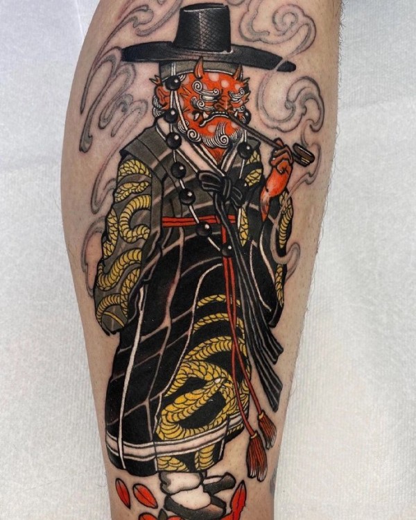 日本彩色新传统传奇人物纹身动物图案纹身 by Yushi Tattoo