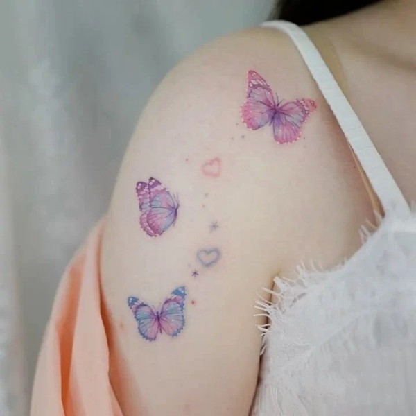 女性喜欢的漂亮的3D立体蝴蝶纹身图案