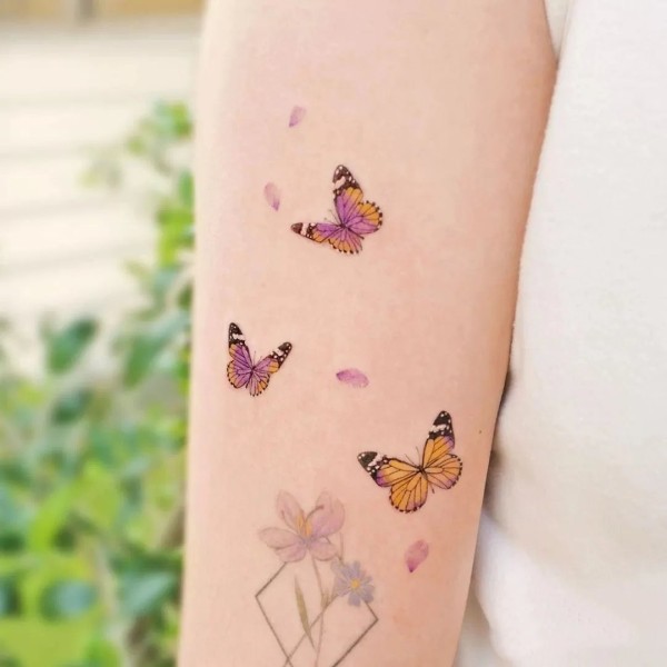 女性喜欢的漂亮的3D立体蝴蝶纹身图案