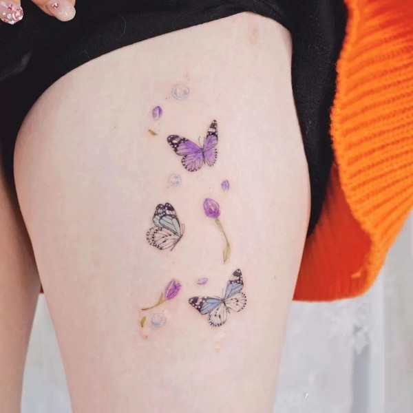 腿部好看的欧美风格的蝴蝶纹身图案_蝴蝶纹身图案大全_纹身图吧