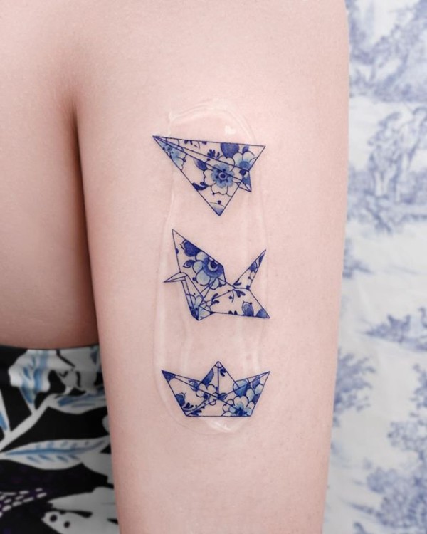 一组韩国纹身师的小清新青花瓷纹身图片
