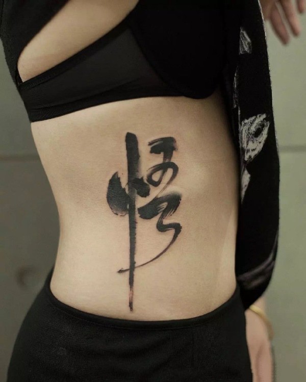 书法纹身 侧腰等部位的中文书法汉字纹身图案