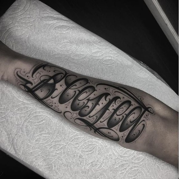小臂花体英文纹身 设计感十足的花体英文纹身图案