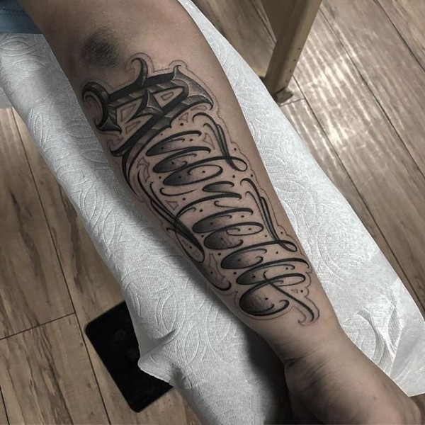 小臂花体英文纹身 设计感十足的花体英文纹身图案