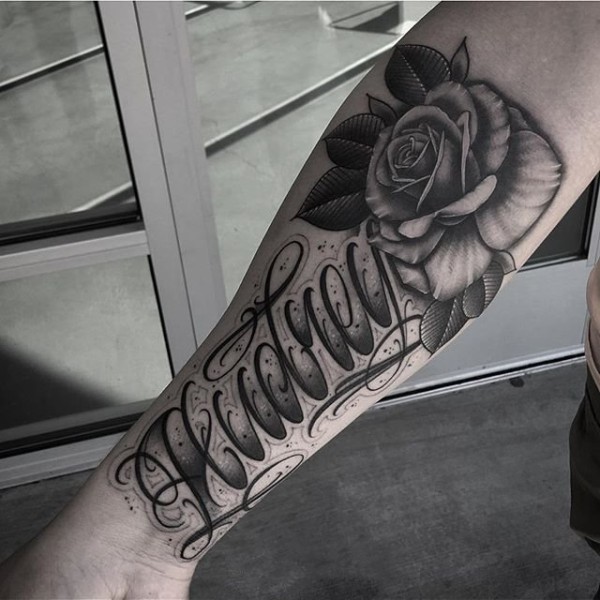小臂花体英文纹身 设计感十足的花体英文纹身图案
