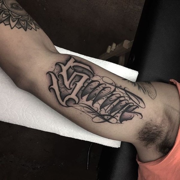 9张胳膊上很有个性的黑色英文花体字纹身图案