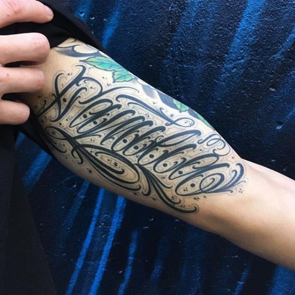 小臂花体英文纹身 设计感十足的花体英文纹身图案