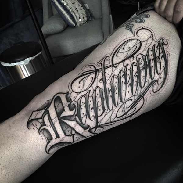 9张胳膊上很有个性的黑色英文花体字纹身图案