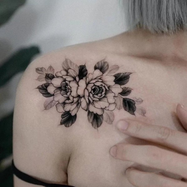 大臂素花纹身 9款女士的大臂黑灰花朵植物纹身图案
