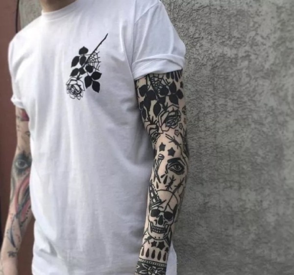 欧美花臂纹身_22张霸气黑灰欧美大黑花臂纹身图案作品图片