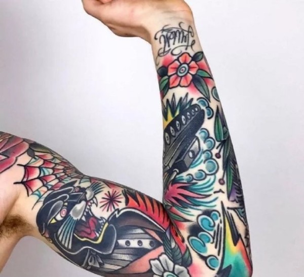 传统风格的一组男性花臂和花腿纹身图案欣赏