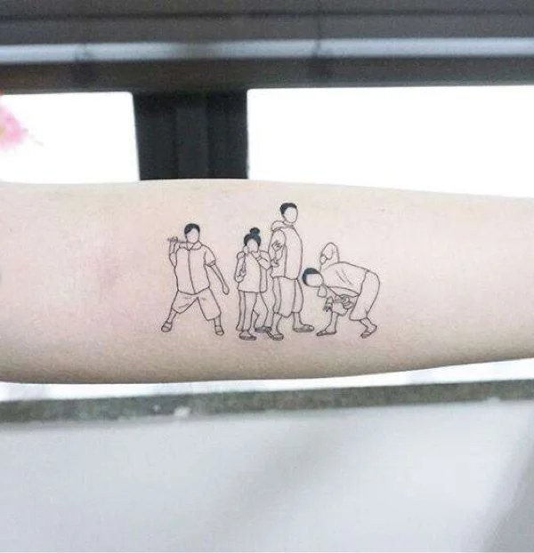一家人纹身图案 男生侧腰上树枝和家人纹身图片