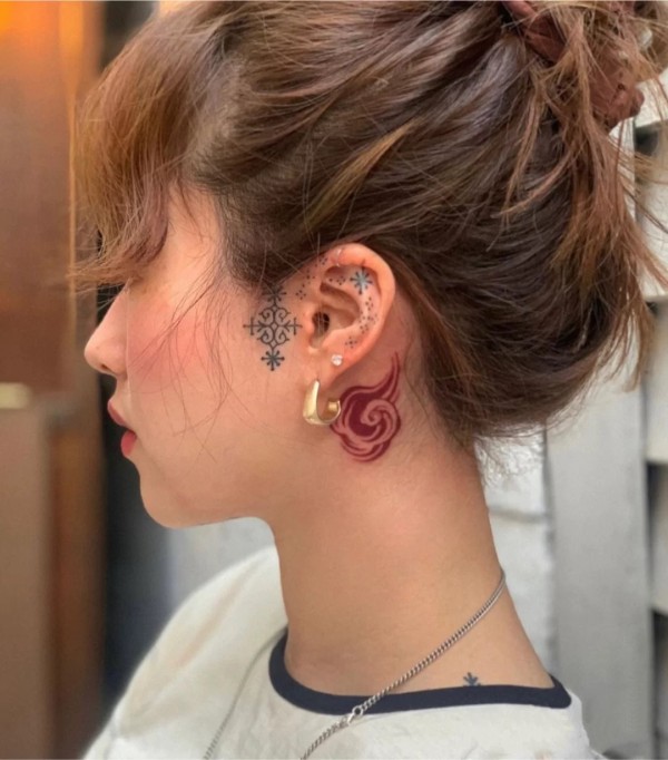 女性后颈部漂亮装饰纹身图案
