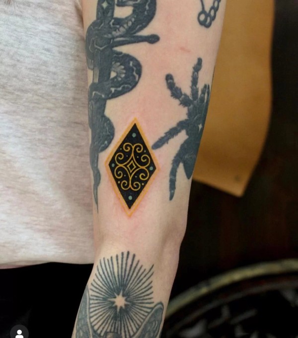 漂亮宝石来点缀的装饰风格黑色点刺纹身图案