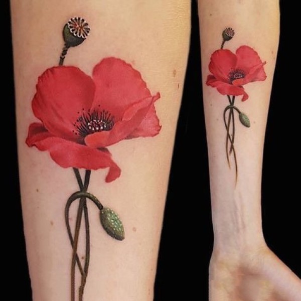 罂粟花纹身图--几张红色艳丽的唯美罂粟花纹身图案作品
