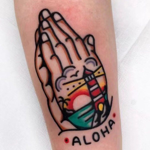 祈祷之手纹身图 虔诚祈祷的祈祷之手纹身图案