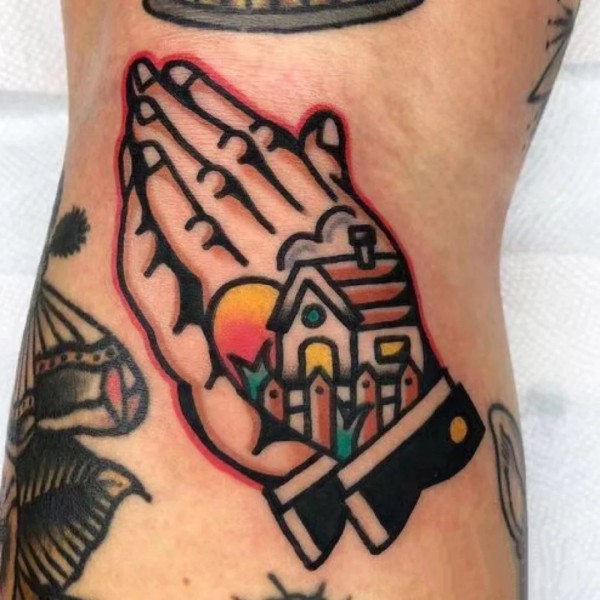 祈祷之手纹身图 虔诚祈祷的祈祷之手纹身图案