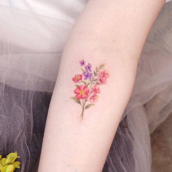 手肘上的一组小清新花卉纹身图片