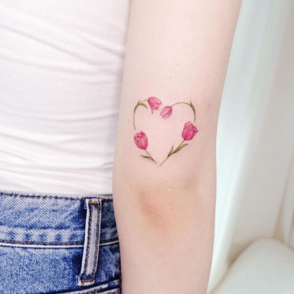 手肘上的一组小清新花卉纹身图片