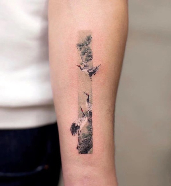 仙鹤纹身--中国风水墨元素的一组仙鹤纹身图案作品