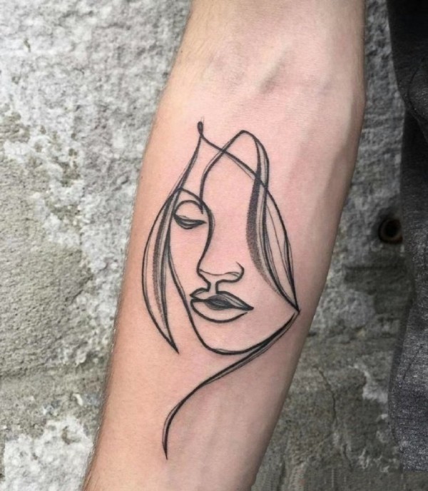 一组简约的线条肖像纹身图片