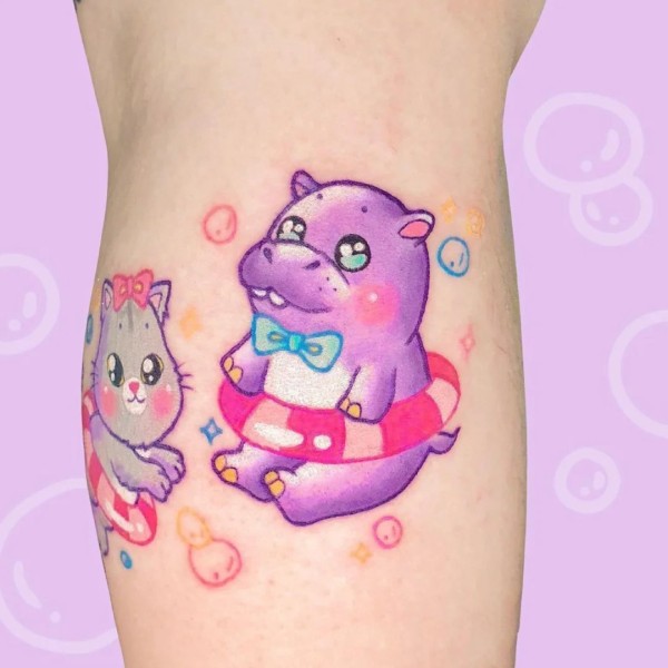可爱卡通小猫咪纹身--猫露娜与亚提密斯的卡通纹身图案