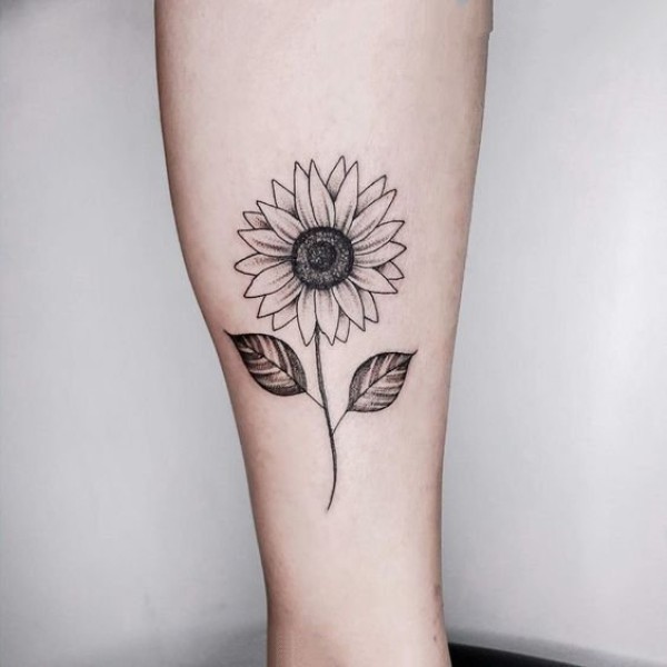 向日葵纹身图案 绽放中的或黑灰或彩绘的向日葵纹身图案