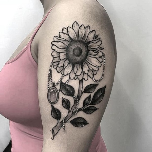 向日葵纹身图案 绽放中的或黑灰或彩绘的向日葵纹身图案