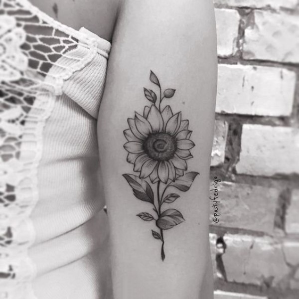 向日葵纹身图案 绽放中的或黑灰或彩绘的向日葵纹身图案