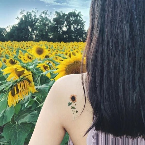 适合女生的一组很漂亮的小清新向日葵纹身图