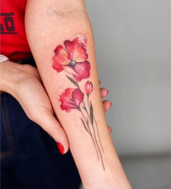 罂粟花纹身图--几张红色艳丽的唯美罂粟花纹身图案作品