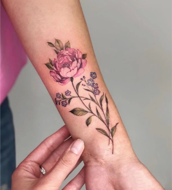 纹在手臂胳膊上的黑灰素花花卉纹身图案欣赏
