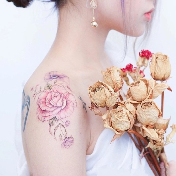 肩花纹身--一组适合肩部的黑灰肩花纹身图案欣赏