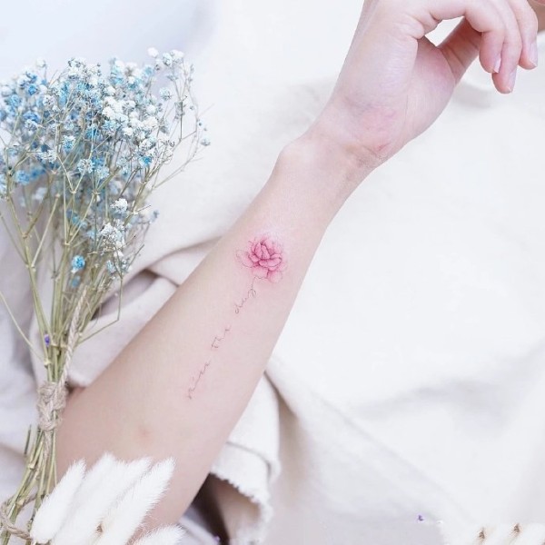 纹在手臂胳膊上的黑灰素花花卉纹身图案欣赏