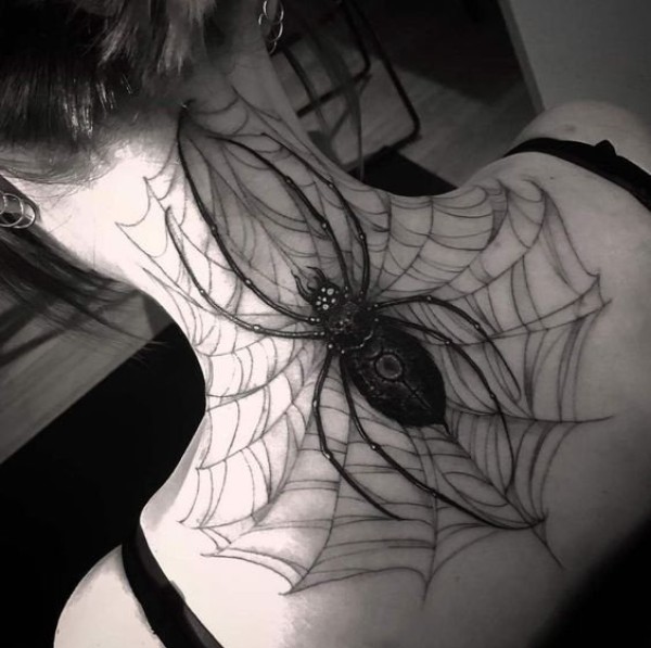 个性的黑色蜘蛛网相关的纹身图案9张
