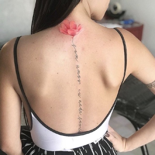 适合女生后背脊椎骨上的漂亮的脊柱纹身