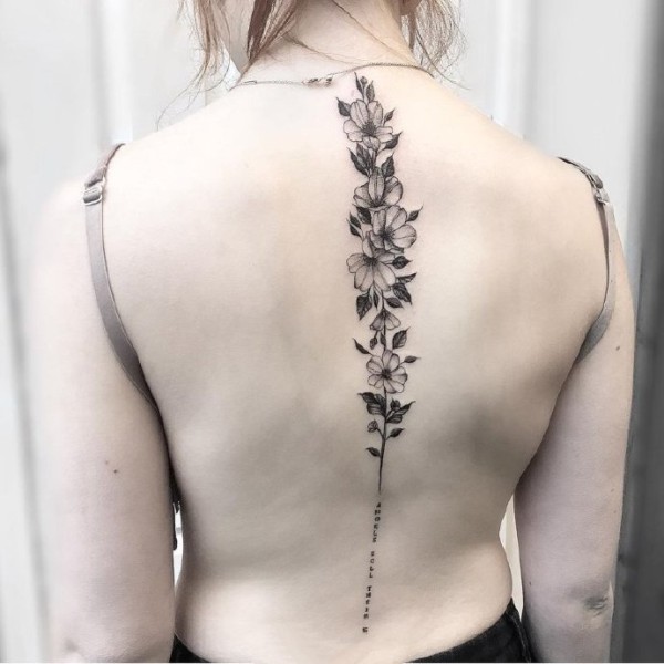 适合女生后背脊椎骨上的漂亮的脊柱纹身