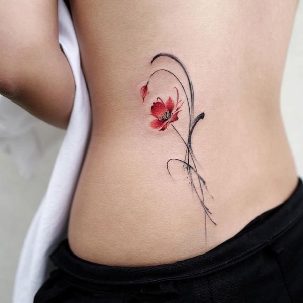 罂粟花纹身图--几张红色艳丽的唯美罂粟花纹身图案作品