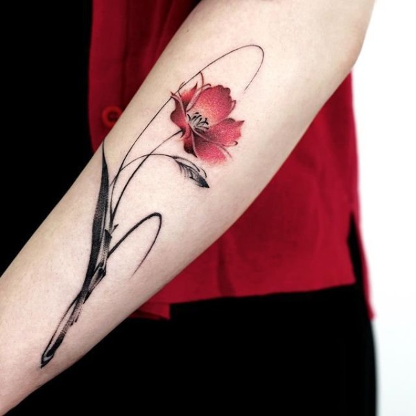 罂粟花纹身图--几张红色艳丽的唯美罂粟花纹身图案作品