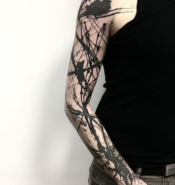 25款男性黑色手臂线条纹身点刺技巧半甲纹身图案
