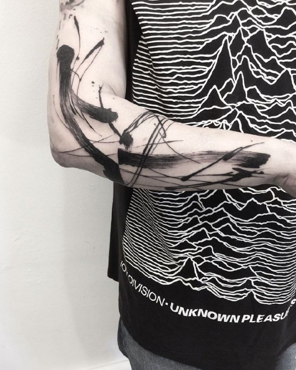 25款男性黑色手臂线条纹身点刺技巧半甲纹身图案