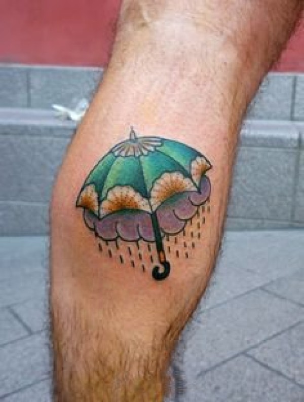 男生手臂上彩绘水彩泼墨雨伞纹身图片
