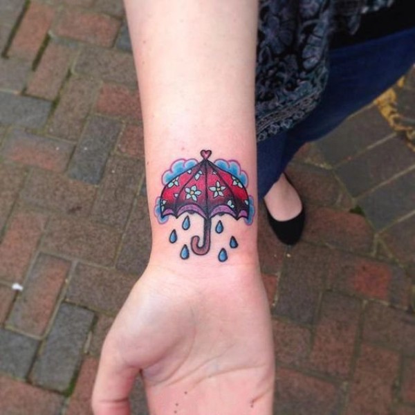 男生手臂上彩绘水彩泼墨雨伞纹身图片