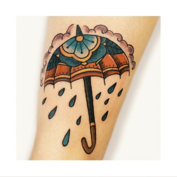 男生手臂上彩绘水彩泼墨雨伞纹身图片