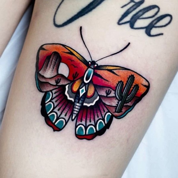 一组颜色饱满的school风格纹身图片